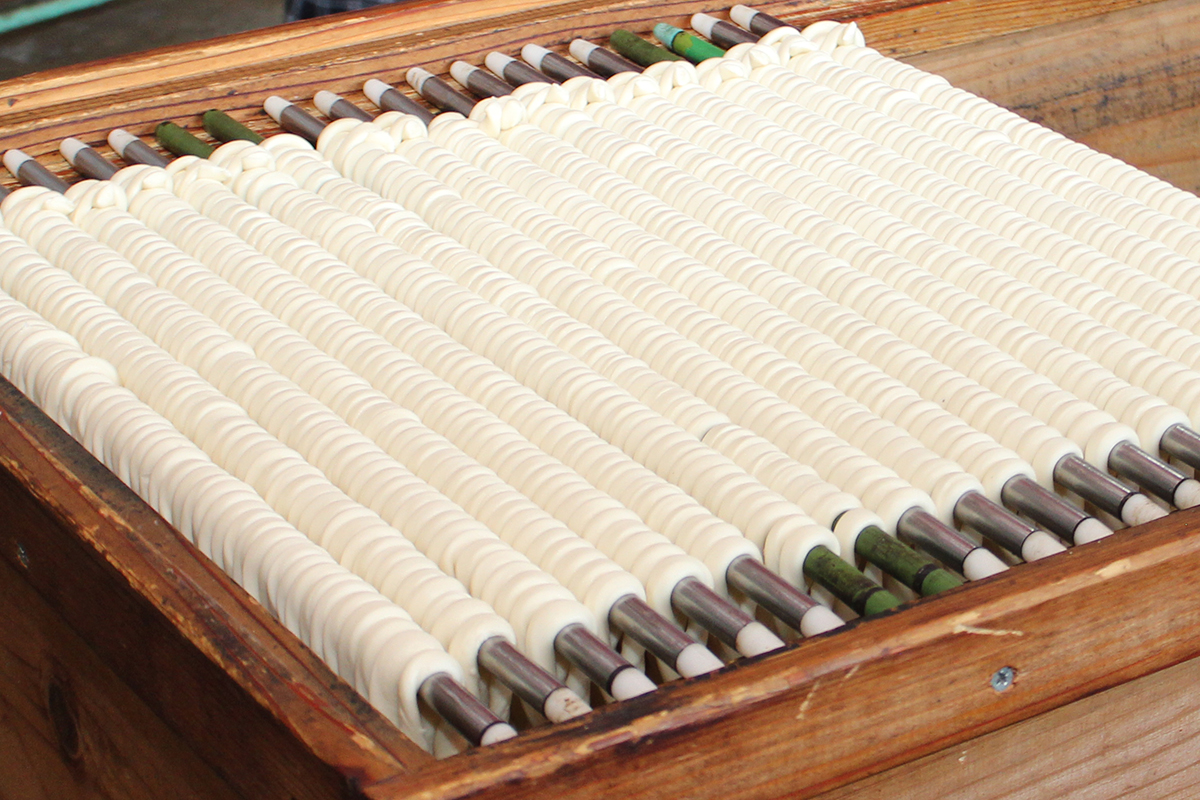 そうめんづくりは冬に行います。これは「寒そうめん(かんそうめん)」と呼ばれます。この時期は塩分の量を抑えても長く延ばせ、甘みがあって良い麺ができます。こちらも昔ながらの伝統製法です。